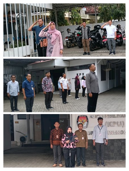Hari ini, Senin, 8 September 2025, Komisi Pemilihan Umum Kabupaten Trenggalek menyelenggarakan Apel Pagi Rutin. Kegiatan yang diselenggarakan di halaman Kantor KPU Kabupaten Trenggalek tersebut diikuti oleh Ketua, seluruh Anggota KPU Kabupaten Trenggalek, Sekretaris beserta jajaran Sekretariat KPU Kabupaten Trenggalek. Bertindak sebagai Inspektur Apel adalah Istatiin Nafiah, Ketua KPU Kabupaten Trenggalek. Sedangkan sebagai Pemimpin Apel adalah Darmaji, pelaksana pada Subbag Partisipasi Masyarakat dan Sumber Daya Manusia. Adapun susunan petugas sebagai berikut sebagai pembawa acara (MC) adalah Woro Wikan Maheswari, pelaksana pada Subbag Teknis Penyelenggaraan Pemilu dan Hukum, sebagai Pembaca Pembukaan UUD 1945 adalah Deniko Sagita Prima, pelaksana pada Subbag Teknis Penyelenggaraan Pemilu dan Hukum, sebagai Pembaca Panca Prasetya KORPRI adalah Ichsanuadi Rosyid Trianto Putro, pelaksana pada Subbag Partisipasi Masyarakat dan Sumber Daya Manusia, sebagai ajudan Inspektur Apel sebagai Pembaca Doa adalah Zaenal Afandhi, pelaksana pada Subbag Keuangan, Umum dan Logistik. Apel dimulai tepat pukul 08.00 WIB oleh pembawa acara (MC), Woro Wikan Maheswari, pelaksana pada Subbag Teknis Penyelenggaraan Pemilu dan Hukum.