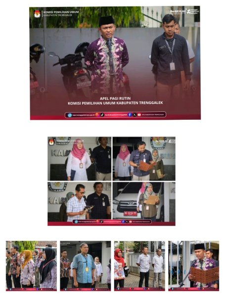 Hari ini, Senin, tanggal 29 September 2025, Komisi Pemilihan Umum Kabupaten Trenggalek menyelenggarakan Apel Pagi Rutin. Kegiatan yang diselenggarakan di halaman Kantor KPU Kabupaten Trenggalek tersebut diikuti oleh Ketua, seluruh Anggota KPU Kabupaten Trenggalek, dan Sekretaris beserta jajaran Sekretariat KPU Kabupaten Trenggalek.