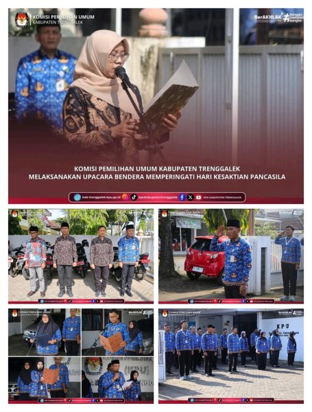 Hari ini, Rabu, tanggal 1 Oktober 2025, Komisi Pemilihan Umum Kabupaten Trenggalek menyelenggarakan Upacara Peringatan Hari Kesaktian Pancasila. Kegiatan yang diselenggarakan di halaman Kantor KPU Kabupaten Trenggalek tersebut diikuti oleh Ketua, seluruh Anggota KPU Kabupaten Trenggalek, dan Sekretaris beserta jajaran Sekretariat KPU Kabupaten Trenggalek.