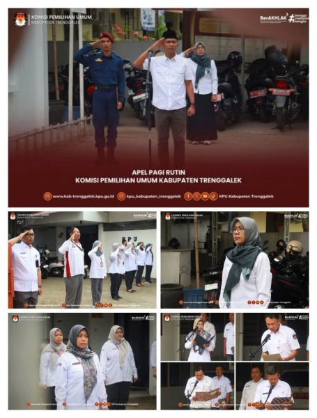 Hari ini, Senin, 26 Januari 2026, Komisi Pemilihan Umum Kabupaten Trenggalek menyelenggarakan Apel Pagi Rutin. Kegiatan yang diselenggarakan di halaman Kantor KPU Kabupaten Trenggalek tersebut diikuti oleh Ketua, seluruh Anggota KPU Kabupaten Trenggalek beserta jajaran Sekretariat KPU Kabupaten Trenggalek. Bertindak sebagai Pembina Apel adalah Tri Andoko, Anggota KPU Kabupaten Trenggalek Ketua Divisi Hukum da Pengawasan. Sedangkan sebagai Pemimpin Apel adalah Yuyun Dwi Puspitasari, Kepala Subbagian Perencanaan, Data dan Informasi. Adapun petugas lainnya adalah sebagai Pembawa Acara/Protokol adalah Whanti Purwaningsih, pelaksana pada Subbagian Keuangan, Umum, dan Logistik, sebagai Pembaca Pembukaan UUD 1945 adalah Rudi Susanto, pelaksana pada Subbagian Perencanaan, Data, dan Informasi, sebagai Pembaca Panca Prasetya KORPRI adalah Deniko Sagita Prima, pelaksana pada Subbagian Keuangan, Umum, dan Logistik, sebagai Pembaca Doa adalah Agus Widodo, pelaksana pada Subbagian Keuangan, Umum, dan Logistik, petugas dokumentasi dan perlengkapan adalah Ma’ruf Hasan Fuady, pelaksana pada Subbagian Partisipasi Masyarakat dan SDM, serta sebagai Ajudan Pembina Apel adalah Rokhip Abduloh, pelaksana pada Subbagian Keuangan, Umum, dan Logistik sekaligus Jagat Saksana KPU Kabupaten Trenggalek Apel pagi dimulai tepat pukul 08.00 WIB oleh pembawa cara/protocol, Whanti Purwaningsih, pelaksana pada Subbagian Keuangan, Umum, dan Logistik.