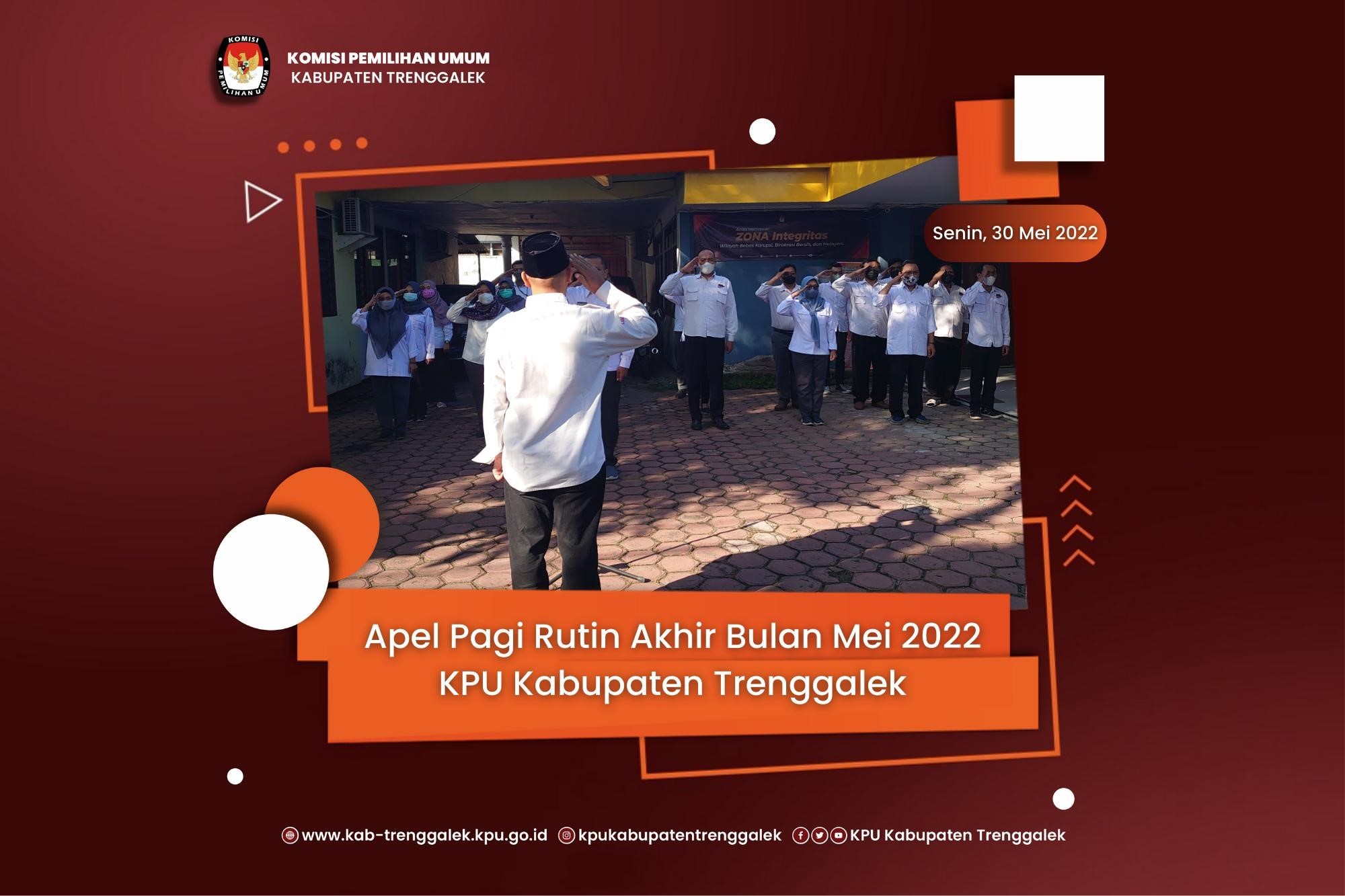 Hari ini, Senin, 30 Mei 2022, berjajar rapi seluruh pegawai KPU Kabupaten Trenggalek di halaman Kantor KPU Kabupaten Trenggalek. Mereka mengikuti Apel Pagi Rutin yang dilaksanakan setiapl hari Senin. Kegiatan yang dimulai pukul 08.00 WIB tersebut dipimpin oleh Nanang Eko Prasetyo, Kasubbag Teknis Penyelenggaraan Pemilu dan Hubungan Masyarakat. Bertindak sebagai Pembina Apel adalah Nurani, Anggota KPU Kabupaten Trenggalek Divisi Sosialisasi, Pendidikan Pemilih, Partisipasi Masyarakat dan Sumber Saya Manusia. Dalam amanatnya, Nurani menyampaikan bahwa tahapan Pemilu Tahun 2024 segera dimulai. Ditegaskannya agar seluruh pegawai KPU Kabupaten Trenggalek mampu memanajemen waktu dengan baik dan mengasah keterampilan dalam menyelesaikan tugas. “Tahapan Pemilu 2024 segera dimulai, diperkirakan pertengahan bulan Juni 2022 ini tahapan sudah dimulai, semua harus mampu memanajemen waktu, dan meningkatkan, mengasah keterampilan dalam menyelesaikan tugas “, tegas Komisioner yang juga pegiat literasi tersebut.