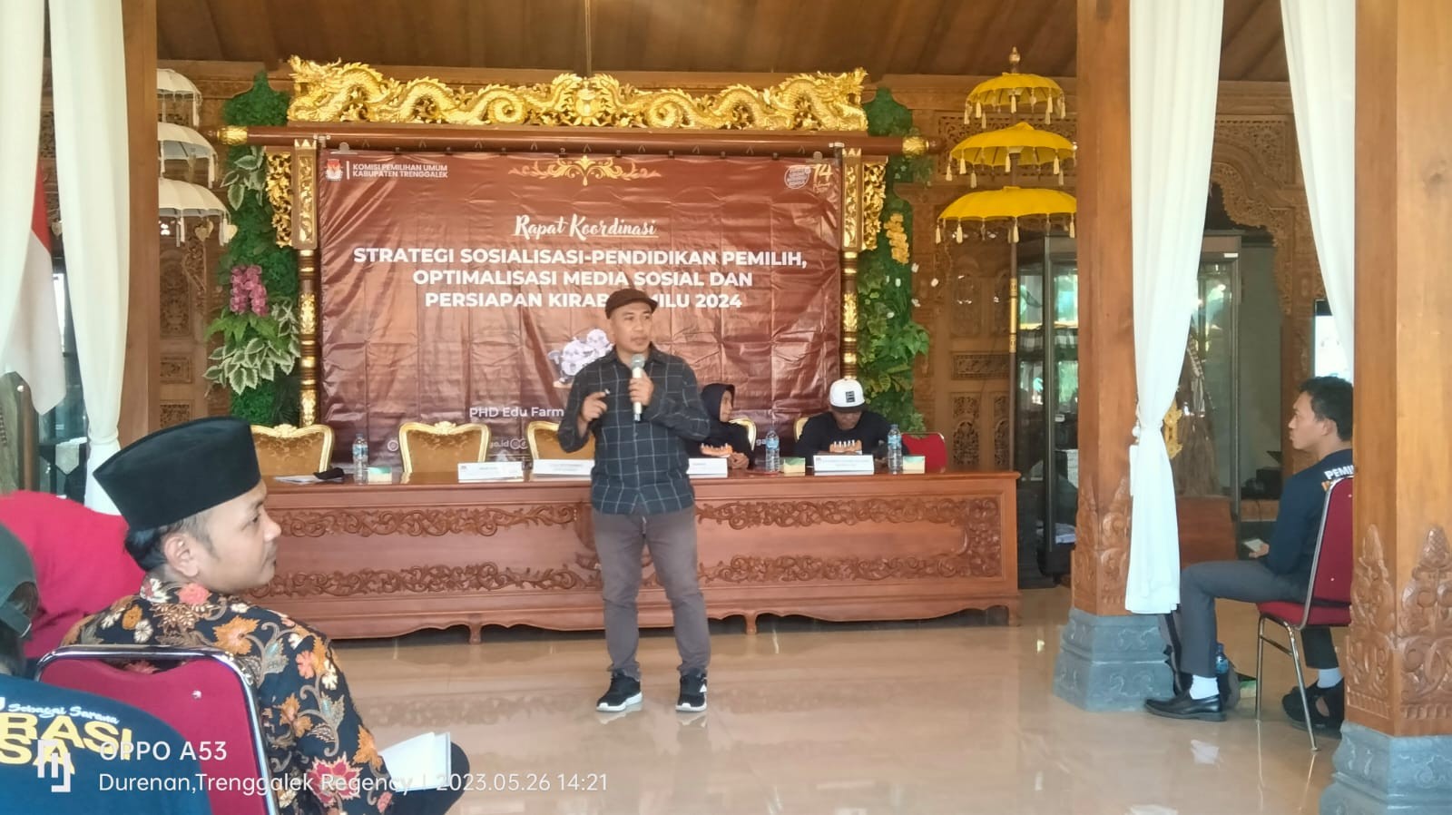 Rapat Koordinasi yang diselenggarakan KPU Kabupaten Trenggalek pada Jumat, 26 Mei 2023 di PHD Edufarm Durenan, Trenggalek, terasa istimewa. Hal itu karena dalam kegiatan Rakor tersebut, peserta kegiatan yang terdiri atas Anggota PPK dan Tenaga Pendukung PPK se-Kabupaten Trenggalek mendapat pelatihan Public Speaking dengan narasumber dari praktisi media, Malik Fajar Setiawan, yang juga menjabat sebagai Anggota KPID Provinsi Jawa Timur Periode tahun 2016-2021. Menurut Nurani, Anggota KPU Kabupaten Trenggalek Divisi Sosialisasi, Pendidikan Pemilih, Partisipasi Masyarakat dan Sumber Daya Manusia bahwa KPU Kabupaten Trenggalek mendatangkan pakar Public Speaking untuk melatih para penyelenggara adhoc tentang cara berkomunikasi/menyampaikan pesan kepada publik. Hal tersebut dibutuhkan karena badan penyelenggara adhoc juga harus mampu menjadi corong kehumasan yang mampu membentuk citra positif lembaga KPU. Sebagai ujung tombak penyelenggaraan Pemilu, PPK dan PPS juga memegang peran strategis dalam menyampaikan informasi yang benar, objektif dan berimbang kepada publik. Peran strategis tersebut harus dioptimalkan agar penyelenggaraan Pemilu dapat berjalan dengan lancar, tertib, aman, demokratis, dan berintegritas. Citra positif lembaga KPU harus turut dibentuk oleh PPK dan PPS karena PPK dan PPS merupakan kepanjangan tangan dari KPU dalam menyelenggarakan tugas, fungsi, dan kewenangannya.