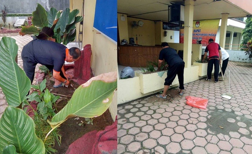 BERSIH KANTOR DAN PERAWATAN TAMAN JADI KEGIATAN JUMAT BERSIH KPU TRENGGALEK