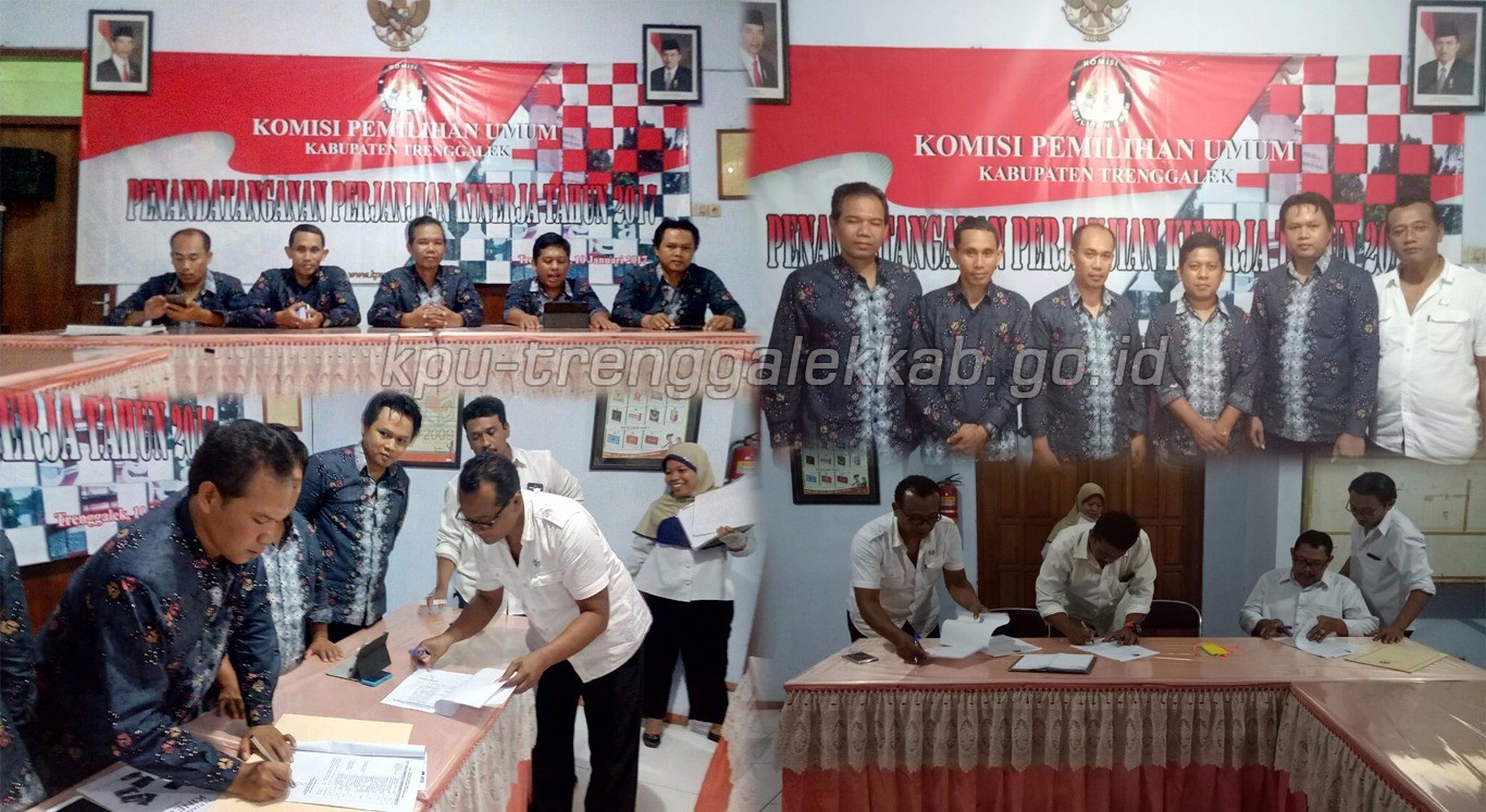 Acara penandatanganan dilakukan antara Sekretaris dengan Komisioner KPU Kabupaten Trenggalek yang diwakili oleh Ketua KPU Kabupaten Trenggalek Suripto. Perjanjian kinerja tersebut berisi komitmen KPU Kabupaten Trenggalek untuk memaksimalkan kinerja dengan melakukan seluruh program kegiatan yang sudah termaktub dalam rencana kerja dan anggaran di DIPA 2017.