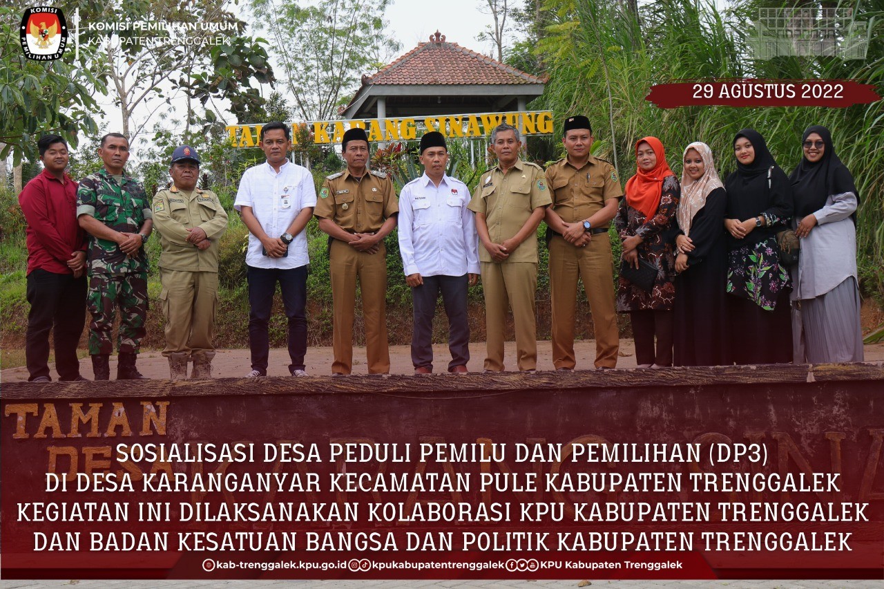 TRENGGALEK—Pada hari Senin tanggal 30 Agustus 2022, rombongan dari Kantor Kesatuan Bangsa dan Politik (Kesbangpol) dan Komisi Pemilihan Umum (KPU) Kabupaten Trenggalek meluncur ke Kecamatan Pule, tepatnya Desa Karanganyar. Mereka mendatangi sebuah spot wisata desa itu. Nama tempatnya adalah Taman Karang Sinawung.