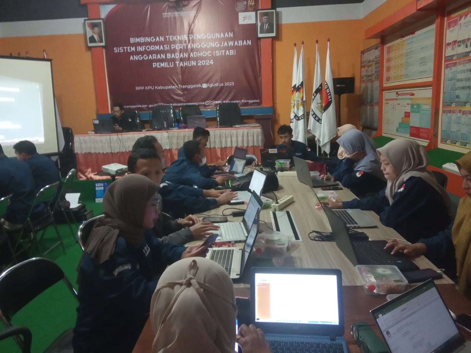 Hari ini, Minggu, tanggal 13 Agustus 2023, Komisi Pemilihan Umum (KPU) Kabupaten Trenggalek menyelenggarakan Bimbingan Teknis Penggunaan Sistem Informasi Pertanggungjawaban Anggaran Badan Adhoc (SITAB) Pemilu Tahun 2024 Gelombang Ketujuh. Kegiatan tersebut diikuti oleh pengelola keuangan dari Sekretariat PPK dan PPS se-Kecamatan Gandusari dan Watulimo. Bimtek kali ini merupakan gelombang terakhir Bimtek SITAB yang diselenggarakan oleh KPU Kabupaten Trenggalek. Kegiatan tersebut dimulai pada pukul 09.00 WIB dengan Menyanyikan Lagu Kebangsaan Indonesia Raya dan dilanjutkan Doa. Acara dibuka secara resmi oleh Sekretaris KPU Kabupaten Trenggalek, Wiratno.