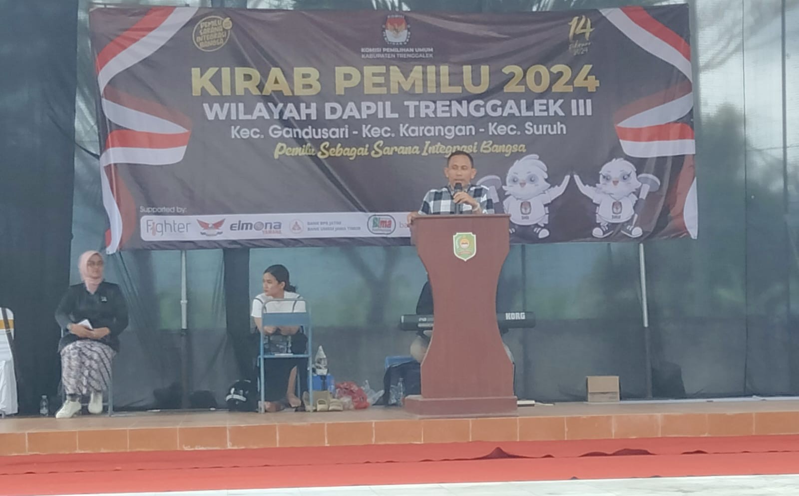 Hari ini, Sabtu, 8 Juli 2023, Komisi Pemilihan Umum (KPU) Kabupaten Trenggalek menggelar Kirab Pemilu Tahun 2024 di wilayah Dapil Trenggalek III yang meliputi kecamatan Gandusari, Karangan, dan Suruh. Pawai Kirab dimulai pada pukul 08.00 WIB dari Kantor KPU Kabupaten Trenggalek menuju ke Kantor Panitia Pemilihan Kecamatan (PPK) Gandusari. Rombongan Kirab terdiri atas Ketua dan Anggota KPU Kabupaten Trenggalek, Sekretaris dan jajaran Sekretariat KPU Kabupaten Trenggalek, Mobil Kirab Bendera Pemilu Tahun 2024, dan Jagat Saksana. Menuju ke lokasi titik pemberhentian awal (Kantor PPK Gandusari), KPU Kabupaten Trenggalek sepanjang perjalanan menyosialisasikan informasi kepemiluan tentang Hari Pemungutan Suara, Ajakan Memilih, Tolak Politik Uang, 18 partai politik peserta Pemilu Tahun 2024, 5 jenis Surat Suara Pemilu dalam Pemilu Tahun 2024, Cek DPT Pemilu Tahun 2024, Alur Kirab Pemilu Tahun 2024 Jalur IV, Dapil dan Pemilu sebagai Sarana Integrasi Bangsa. Rombongan tiba di Kantor PPK Gandusari pada pukul 09.30 WIB dan dilakukan Apel Keberangkatan di halaman Kantor PPK Gandusari yang diikuti oleh Rombongan Kirab dari KPU Kabupaten Trenggalek, PPK Gandusari, Sekretariat PPK Gandusari, PPS dan Sekretariat PPS se-Kecamatan Gandusari. Apel dipimpin oleh Adiema, Anggota PPK Gandusari Divisi Teknis Penyelenggaraan dan bertindak sebagai Pembina Apel yaitu Nurani, Anggota KPU Kabupaten Trenggalek Divisi Sosialisasi, Pendidikan Pemilih, Partisipasi Masyarakat, dan Sumber Daya Manusia. Setelah apel selesai, rombongan Kirab Pemilu Tahun 2024 bersama PPK, Sekretariat PPK, PPS dan Sekretariat PPS se-Kecamatan Gandusari melanjutkan pawai Kirab Pemilu Tahun 2024 menuju ke Kantor PPK Suruh dengan terlebih dahulu menyusuri jalan-jalan desa di Kecamatan Gandusari untuk menyosialisasikan Hari Pemungutan Suara, Ajakan Memilih, Tolak Politik Uang, 18 partai politik peserta Pemilu Tahun 2024, 5 jenis Surat Suara Pemilu dalam Pemilu Tahun 2024, Cek DPT Pemilu Tahun 2024, Alur Kirab Pemilu Tahun 2024 Jalur IV, Dapil dan Pemilu sebagai Sarana Integrasi Bangsa. Rombongan sampai di Kantor PPK Suruh dan disambut oleh seluruh PPK, Sekretariat PPK, PPS, dan Sekretariat PPS se-Kecamatan Suruh beserta dengan Camat dan Forkompimcam Suruh. Selanjutnya dillakukan Apel Keberangkatan yang dipimpin oleh Ketua PPK Suruh, dan beryindak sebagai Pembina Apel adalah Gembong Derita Hadi, Ketua KPU Kabupaten Trenggalek. Setelah apel, rombongan melanjutkan Kirab menuju ke Kantor PPK Karangan. Mobil Kirab yang berisi bendera Merah-Putih, Panji (Pataka) KPU, dan 18 bendera partai politik diiringi oleh rombongan dari KPU Kabupaten Trenggalek, PPK, Sekretariat PPK, PPS, dan Sekretariat PPS se-Kecamatan Gandusari dan Suruh dengan berjalan kaki dari kantor Kecamatan Suruh menuju ke kantor Kecamatan Karangan. Rombongan Kirab tersebut juga diiringi oleh atraksi Barongsai sehingga menarik perhatian masyarakat untuk ikut menyaksikan Kirab Pemilu Tahun 2024 di sepanjang jalan menuju Kantor PPK Karangan dan bahkan banyak dari masyarakat mengikuti rombongan menuju ke Kantor PPK Karangan. Selama perjalanan tersebut juga disampaikan informasi kepemiluan tentang Cek DPT Pemilu Tahun 2024, Alur Kirab Pemilu Tahun 2024 Jalur IV, Dapil dan Pemilu sebagai Sarana Integrasi Bangsa.
