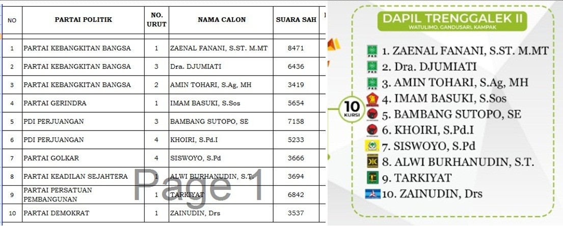 INILAH NAMA-NAMA “WAKIL RAKYAT” TERPILIH DARI DAPIL 2 TRENGGALEK (WATULIMO, KAMPAK, GANDUSARI)