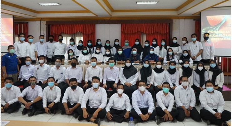 SURABAYA—Pada hari Rabu tanggal 03 Maret 2021, anak-anak muda dari berbagai kota se-Indonesia yang diterima sebagai CPNS yang ditempatkan di satker KPU yang tersebar di Jawa Timur berkumpul di aula Lantai 2 KPU Propinsi Jawa Timur. Mereka yang memakai baju putih dan bercelana hitam hadir dalam acara Penyerahan SK Calon Pegawai Negeri Sipil (CPNS) dari KPU RI.