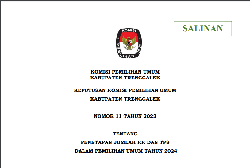 KEPUTUSAN KOMISI PEMILIHAN UMUM KABUPATEN TRENGGALEK NOMOR 11 TAHUN 2023 TENTANG PENETAPAN JUMLAH KK DAN TPS DALAM PEMILIHAN UMUM TAHUN 2024
