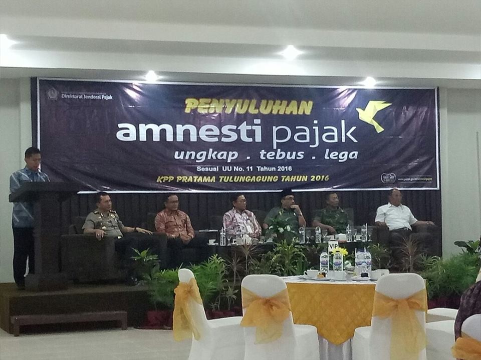 Sebagaimana sampaikan Ketua KPU Kabupaten Trenggalek, Suripto, sepulang dari acara tersebut, acara dibuka oleh Ketua Dewan Perwakilan Rakyat Daerah (DPRD) Trenggalek Samsul Anam dalam posisi mewakili Bupati Trenggalek yang tidak bisa hadir karena sedang ada acara dinas bersama Wakil Bupati ke Jakarta. Sambutan lain juga diberikan oleh Kanwil Ditjen Pajak Wilayah III Jawa Timur. Sedangkan pemateri dalam acara sosialisasi “Tax Amnesty” ini adalah dari KPP Pratama Tulungagung.