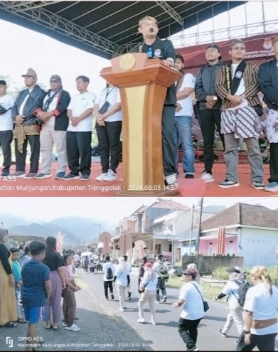 Hari ini, Sabtu, 3 Agustus 2024, merupakan hari ketiga pelaksanaan Kirab Maskot Pilgub Jatim dan Pilbup Trenggalek Tahun 2024 di Kabupaten Trenggalek.