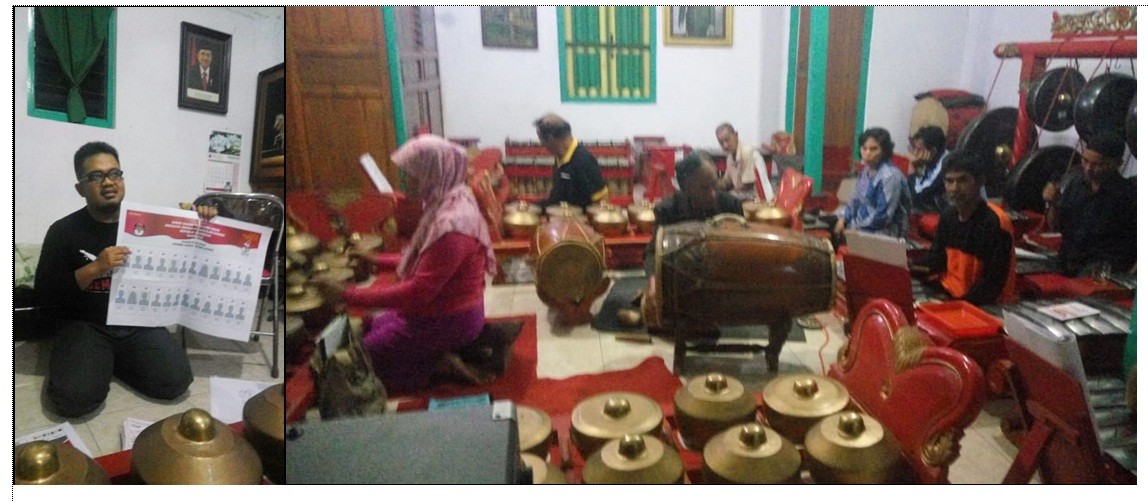 Sosialisasi dimulai pada pukul 22.30 WIB dan dihadiri oleh 11 penggiat musik gamelan. Pemaparan diawali dengan mengingatkan bahwa Pemilu serentak akan diadakan pada 17 April 2019 yang mencakup pemilihan Presiden beserta wakilnya, DPD RI, DPR RI, DPRD Provinsi JawaTimur, dan DPRD Kabupaten Trenggalek.