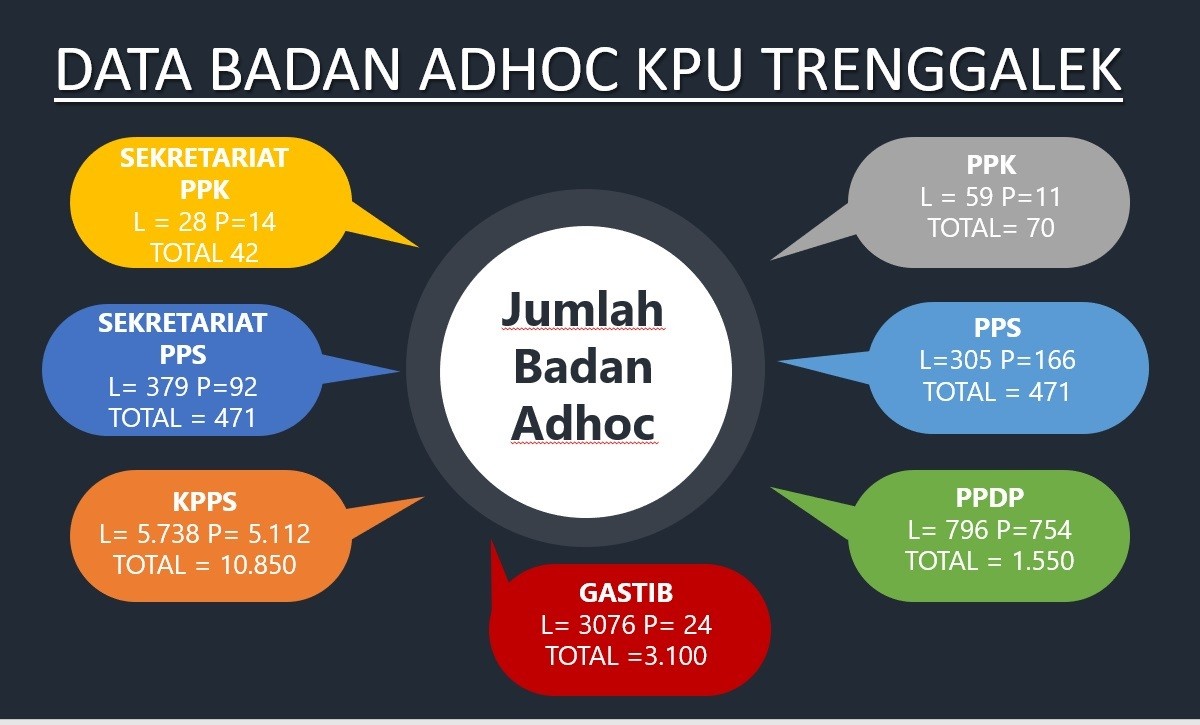 SURABAYA—Dalam kegiatan hari pertama evaluasi badan ad hoc yang diselenggarakan di Aula Kantor Komisi Pemilihan Umum (KPU) Propinsi Jawa Timur pada hari ini (09/03/2021), KPU Kabupaten Trenggalek memaparkan data infografis panitia ad hoc baik di PPK, PPS, PPDP, dan KPPS. Dari data ini, selain PPDP, jumlah panitia ad hoc yang jumlahnya melampaui Kuota 30% perempuan adalah KPPS (Kelompok Penyelenggara Pemungutan Suara).