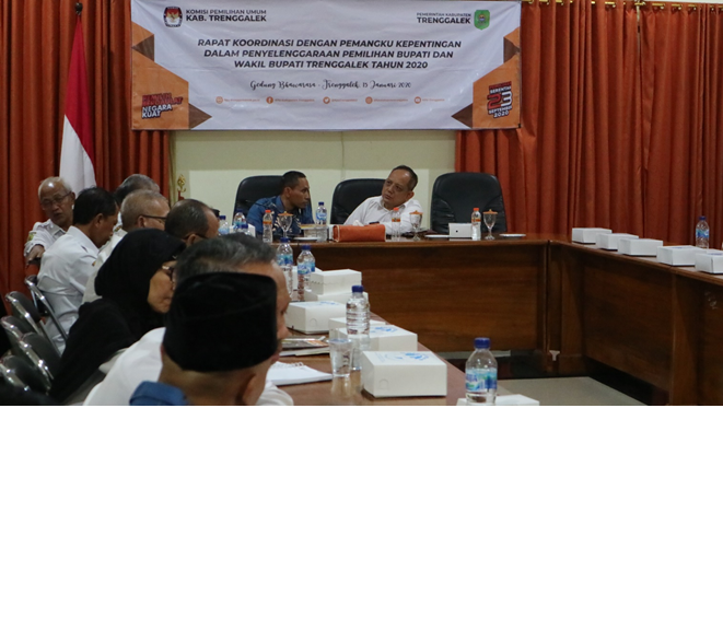 Pemilihan Bupati dan Wakil Bupati Tahun 2020 memerlukan banyak kesiapan mulai dari pengajuan dana hibah hingga tahapan yang akan terus berlanjut sampai pemungutan suara pada hari Rabu 23 September 2020. Berkaitan dengan itu, Komisi Pemilihan Umum Kabupaten Trenggalek mengadakan Rapat Koordinasi dengan Para Pemangku Kepentingan yang dilaksanakan pada hari Rabu (15/01/2020). Acara ini dihadiri oleh seluruh stake holder pemerintah, mulai dari dinas terkait hingga tingkat Kecamatan.