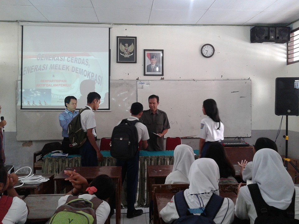 KPU-TRENGGALEKKAB.GO.ID. Divisi Sosialisasi, Pendidikan Pemilih, dan Pengembangan Informasi KPU Kabupaten Trenggalek, Nurani, merasa bergembira dengan diberikannya ruang untuk KPU Kabupaten Trenggalek memperkenalkan demokrasi dan wawasan kepemiluan di kalangan siswa-siswa SMAN 1 Karangan pada hari ini (Selasa, 19/07/20016).
