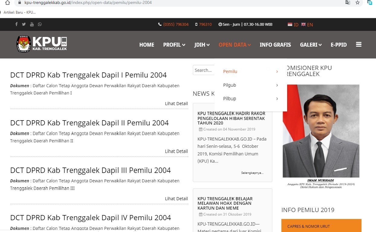 Dokumen tersebut sudah dapat diakses melalui website KPU Kabupaten Trenggalek. Pengaksesan bisa dilakukan dengan cara masuk kedalam halaman website kpu-trengalekkab.go.id kemudian pilih menu open data yang terletak pada kanan atas tampilan web. Terdapat pilihan yang tersedia yaitu Pemilu, Pilgub, dan Pilbup, kemudian klik dokumen yang diinginkan.