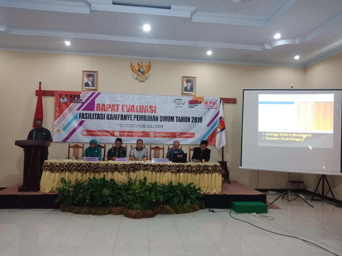 Atas dasar itulah, Komisi Pemilihan Umum (KPU) Kabupaten Trenggalek menyelenggarakan rapat evaluasi terhadap tahapan kampanye Pemilu 2019 dengan mengundang seluruh stakeholder, baik partai politik yang ada di kabupaten Trenggalek, organisasi pemerintah daerah yang terkait, badan pengawas Pemilu (Bawaslu), kepolisian, hingga organisasi-organisasi masyarakat, kepemudaan, mahasiswa, dan lembaga masyarakat sipil. Acara dilangsungkan pada Hari Selasa tanggal 30 Juli 2019 di Aula Hotel Mayam Wuruk Trenggalek.