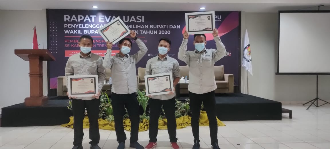TRENGGALEK—Panitia pemilihan Kecamatan (PPK) Durenan mendapatkan penghargaan sebagai PPK terbaik pertama Se Kabupaten Trenggalek. Hal itu dilakukan dalam Rapat Evaluasi Penyelenggaraan Pemilihan Bupati Dan Wakil Bupati Trenggalek Tahun 2020, yang diselenggarakan oleh KPU Kabupaten Trenggalek di Hall Prigi, Hotel Ja’as Permai hari ini, tanggal 26 Januari 2021.