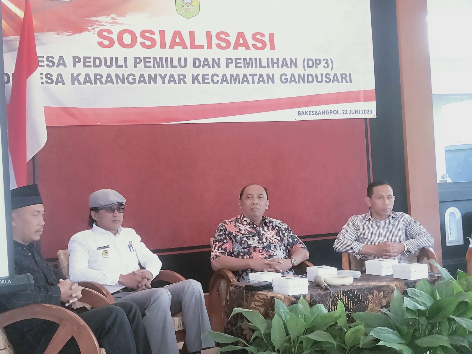 Hari ini, Kamis, tanggal 22 Juni 2023, pukul 09.00 sampai dengan 14.00 WIB, KPU Trenggalek lagi-lagi hadir ke desa untuk melakukan sosialisasi dan pendidikan pemilih dalam rangka Pemilu 2024 dan dalam rangka menyebarkan wawasan terkait Demokrasi pada masyarakat pedesaan. Kali ini masih bersama program Desa Peduli Pemilu dan Pemilihan (DP3) yang dilaksanakan oleh Badan Kesatuan Kebangsaan dan Politik (Bakesbangpol) Kabupaten Trenggalek di Desa Karanganyar, Kecamatan Gandusari.