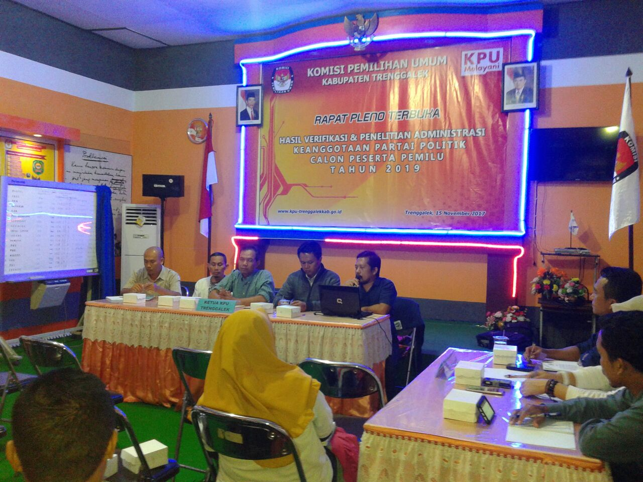 KPU TRENGGALEK GELAR RAPAT PLENO TERBUKA HASIL VERIFIKASI ADMINISTRASI KEANGGOTAAN PARPOL CALON PESERTA PEMILU 2019