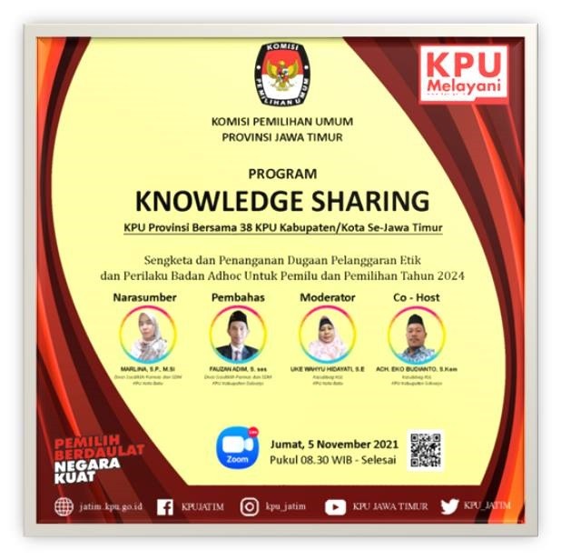 Rochani selaku Divisi di KPU Propinsi Jawa Timur menyatakan bahwa knowledge sharing kali ini mengingatkan kita semua akan pentingnya etikad baik Jajaran Penyelenggara dalam penegakan kode etik dan perilaku untuk menjaga kehormatan, kemandirian, profesionalitas dan independensi Penyelenggara, baik yang penyelenggara permanen maupun yang bersifat adhoc, sosialisasi dan edukasi nilai nilai etik yang mengikat penyelenggara pemilu menjadi satu kebutuhan yang harus disampaikan saat awal diteapkan menjadi penyelenggara. [Wr]