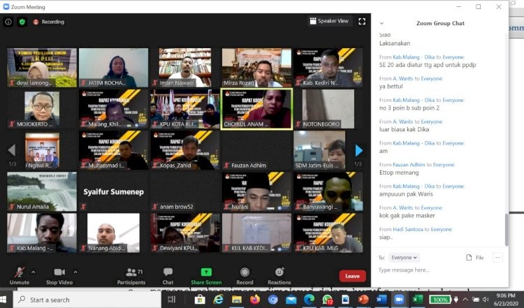 Sebelum pukul pukul 20.00 WIB, Nurani selaku Divisi Sosialisasi-Pendidikan Pemilih, Partisipasi Masyarakat, dan Sumber Daya Manusia bersama Rudi Bastari Kasubag Umum KPU Kabupaten Trenggalek sudah masuk dalam jaringan online diskusi melalui aplikasi zoom.