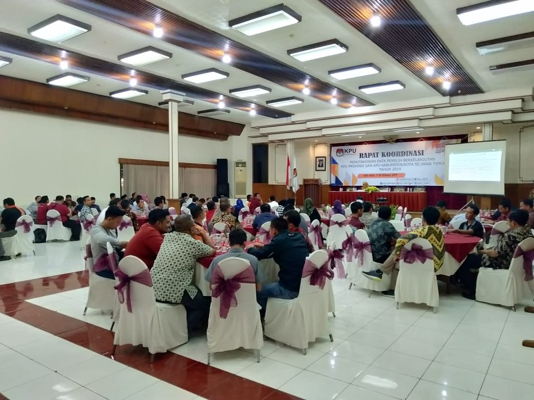 Oleh karena itulah, untuk memahamkan pentingnya proses tersebut, KPU Propinsi Jawa Timur mengundang KPU Kabupaten/Kota se-Jawa Timur dalam acara Rapat Koordinasi (Rakor) Pemutakhiran Data Pemilih Berkelanjutan. Acara dilaksanakan di Kota Malang pada tanggal 09-10 Oktober 2019.