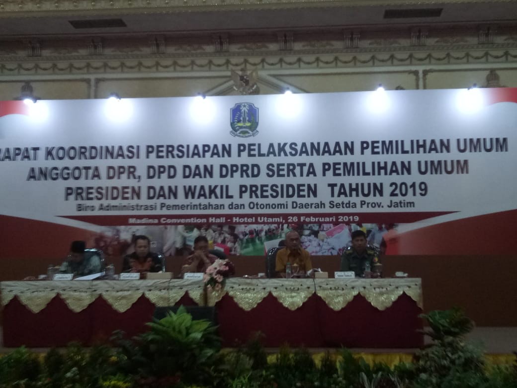 Hari ini, Selasa, 26 Pebruari 2019, Ketua KPU Kabupate Trenggalek menghadiri Rakor Persiapan Pelaksanaan Pemilu Pemilu Anggota DPR, DPD, DPRD, Presiden dan Wakil Presiden 2019 di Sidoarjo. Acara yang diselenggarakan oleh Biro Administrasi Pemerintahan dan Otonomi Daerah Setda Provinsi Jawa Timur ini bertempat di Madina Convention Hall-Hotel Utami Jl. Juanda Selatan Sidoarjo.