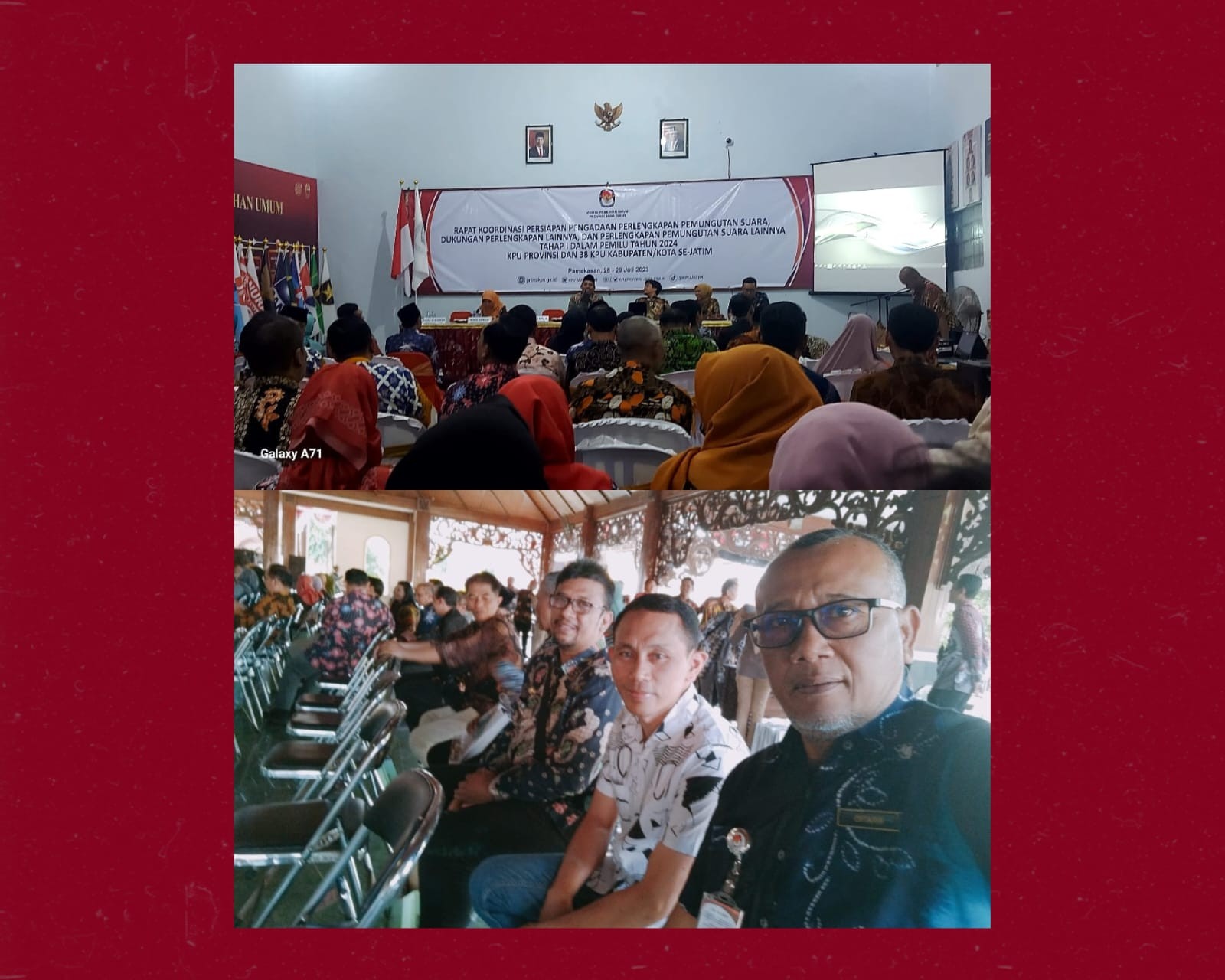 Hari Jumat sampai dengan Sabtu, tanggal 28 sampai dengan 29 Juli 2023, Komisi Pemilihan Umum (KPU) Kabupaten Trenggalek menghadiri kegiatan Rapat Koordinasi Persiapan Pengadaan Logistik Pemilu Tahun 2024 yang diselenggarakan KPU Provinsi Jawa Timur. Kegiatan tersebut diselenggarakan di Pendopo Mandhapah Agung Ronggosukowati, Pamekasan, yang dibagi dalam beberapa sesi pada hari pertama dan kedua. Acara di hari pertama dimulai dengan Pembukaan pada hari Jumat, 28 Juli 2023 pada pukul 15.00 WIB dan berakhir pada hari Sabtu, 29 Juli 2023, pukul 13.00 WIB. Rombongan dari KPU Kabupaten Trenggalek terdiri dari Gembong Derita Hadi, Ketua KPU Kabupaten Trenggalek yang juga Divisi Keuangan, Umum, dan Logistik, bersama dengan Wiratno, Sekretaris KPU Kabupaten Trenggalek selaku Kuasa Pengguna Anggaran dan Pejabat Pembuat Komitmen, serta Akhmad Rudy Bastari, Kasubbag Keuangan, Umum dan Logistik selaku Pejabat Pengadaan Barang dan Jasa di lingkungan KPU Kabupaten Trenggalek. Rombongan dari KPU Kabupaten Trenggalek membaur dengan rombongan dari KPU Kabupaten/Kota lain se-Provinsi Jawa Timur. Acara dipimpin oleh Komisioner KPU Provinsi Jawa Timur dan yang menjadi leading sector adalah Divisi Perencanaan dan Logistik yang diketuai Miftakhur Rozaq serta Sekretaris KPU Provinsi Jawa Timur, Nanik Karsini beserta jajaran Sekretariat KPU Provinsi Jawa Timur yang membidangi Pengelolaan Logistik. Acara tersebut juga dihadiri Bupati Pamekasan, Badrut Tamam yang hadir pada saat pembukaan acara pada Jumat, 28 Juli 2023.