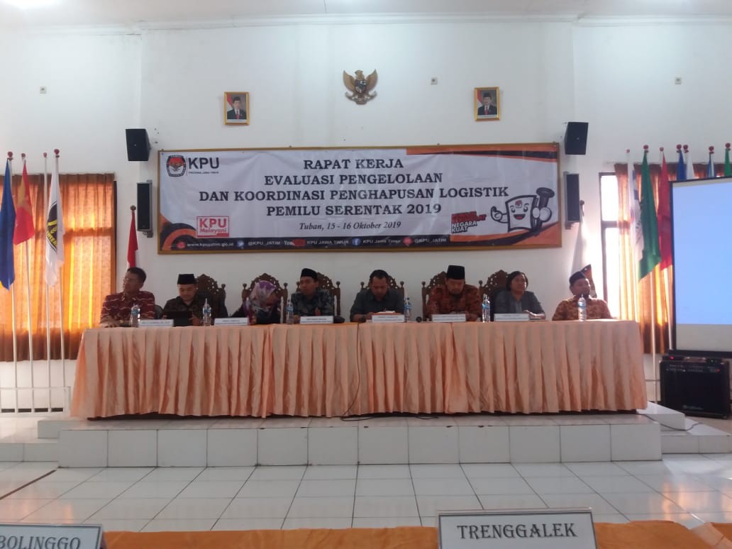 Dalam rangka melakukan pengelolaan logistik sesuai aturan itulah, KPU Kabupaten Trenggalek pada hari Selasa-Rabu, tanggal 15-16 Oktober 2019, menghadiri acara Rapat Kerja Evaluasi Pengelolaan dan Koordinasi Penghapusan Logistik Pemilu Serentak 2019. Acara yang diadakan Komisi Pemilihan Umum (KPU) Provinsi Jawa Timur ini diselenggarakan di Aula KPU Kabupaten Tuban.