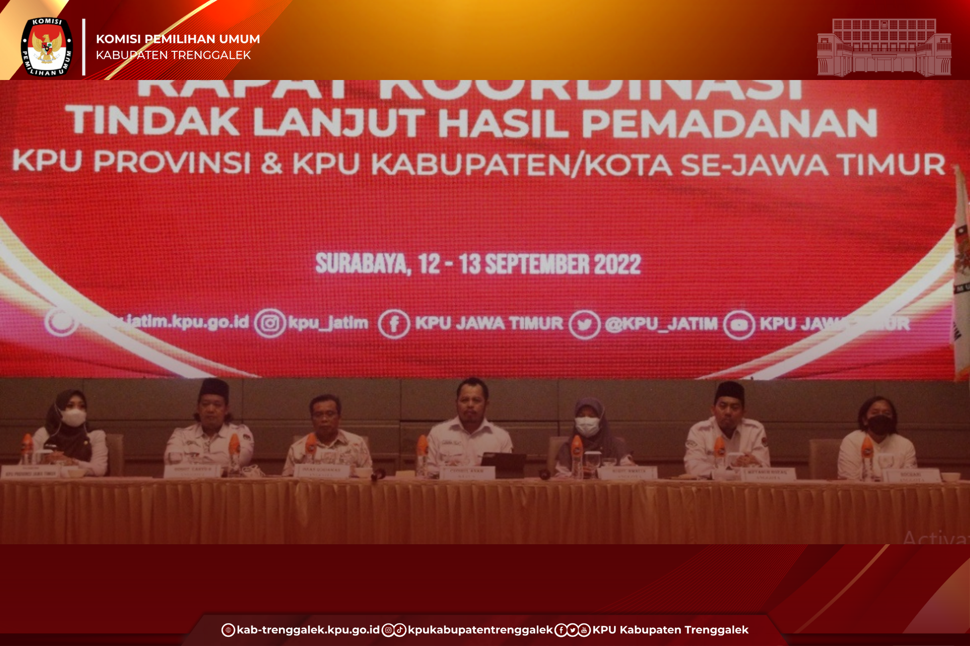 Untuk melakukan evaluasi terhadap kegiatan itu dan untuk mendapatkan gambaran tentang tindaklanjutnya, KPU Kabupaten Trenggalek memenuhi undangan KPU Propinsi Jawa Timur dalam Rapat Kordinasi Tindak Lanjut Hasil Pemadanan, yang diselenggarakan di Hotel Vasa Surabaya, Senin-Selasa, 12-13 September 2022.