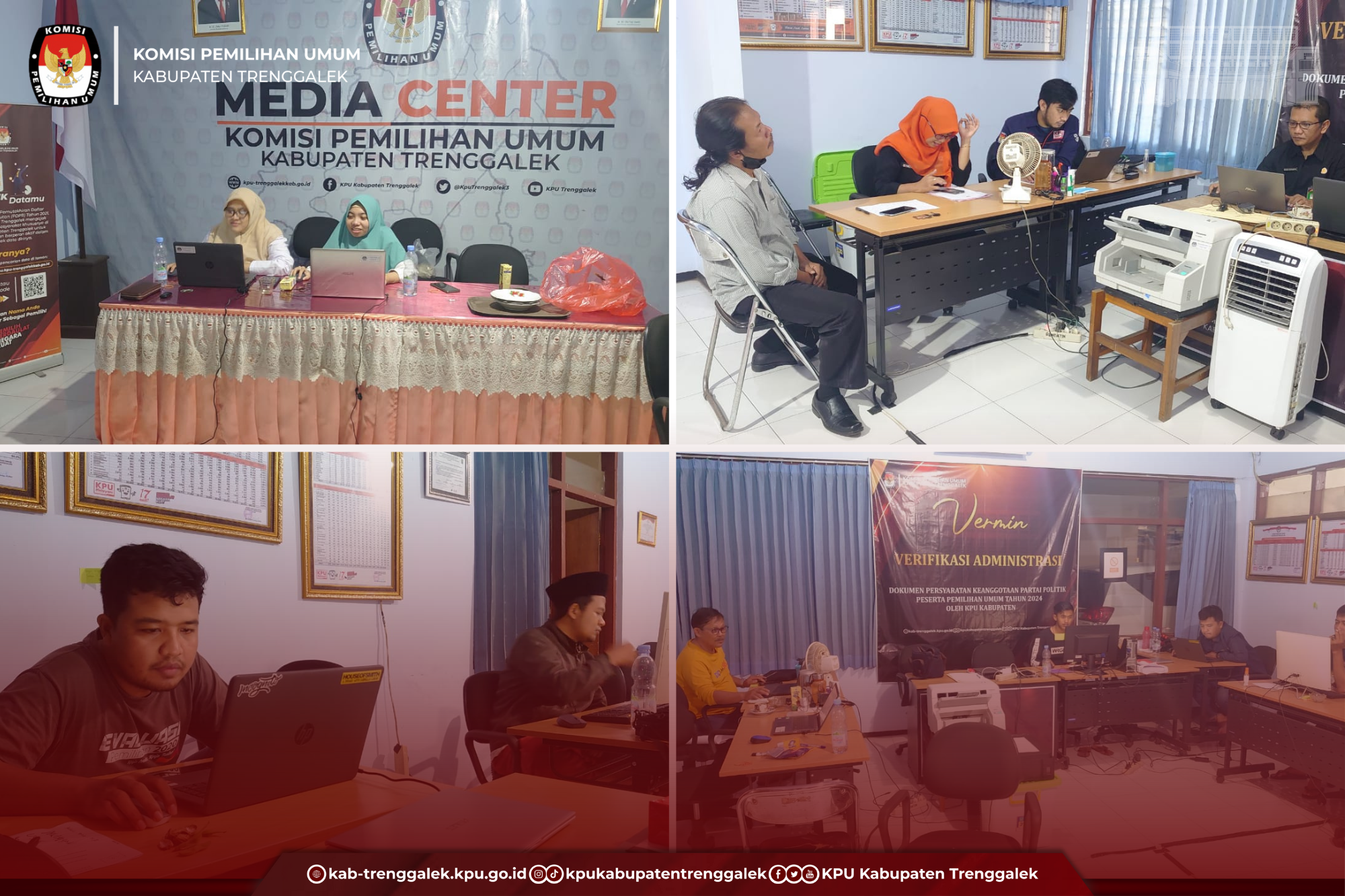 TRENGGALEK— Hari ini (18/08/2022), Komisi Pemilihan Umum (KPU) Kabupaten Trenggalek mulai lakukan verifikasi administrasi terhadap keanggotaan partai politik. Kegiatan dilakukan di ruang operator yang terletak di aula Media Center KPU Kabupaten Trenggalek. Jadwal verifikasi administrasi sebagaimana diatur Peraturan KPU Nomor 4 Tahun 2022 adalah mulai tanggal 2 Agustus sampai 11 September 2022. Tapi karena hingga kemarin aplikasi Sipol belum bisa dilakukan verifikasi administrasi, maka baru hari ini kegiatan vermin dilakukan.