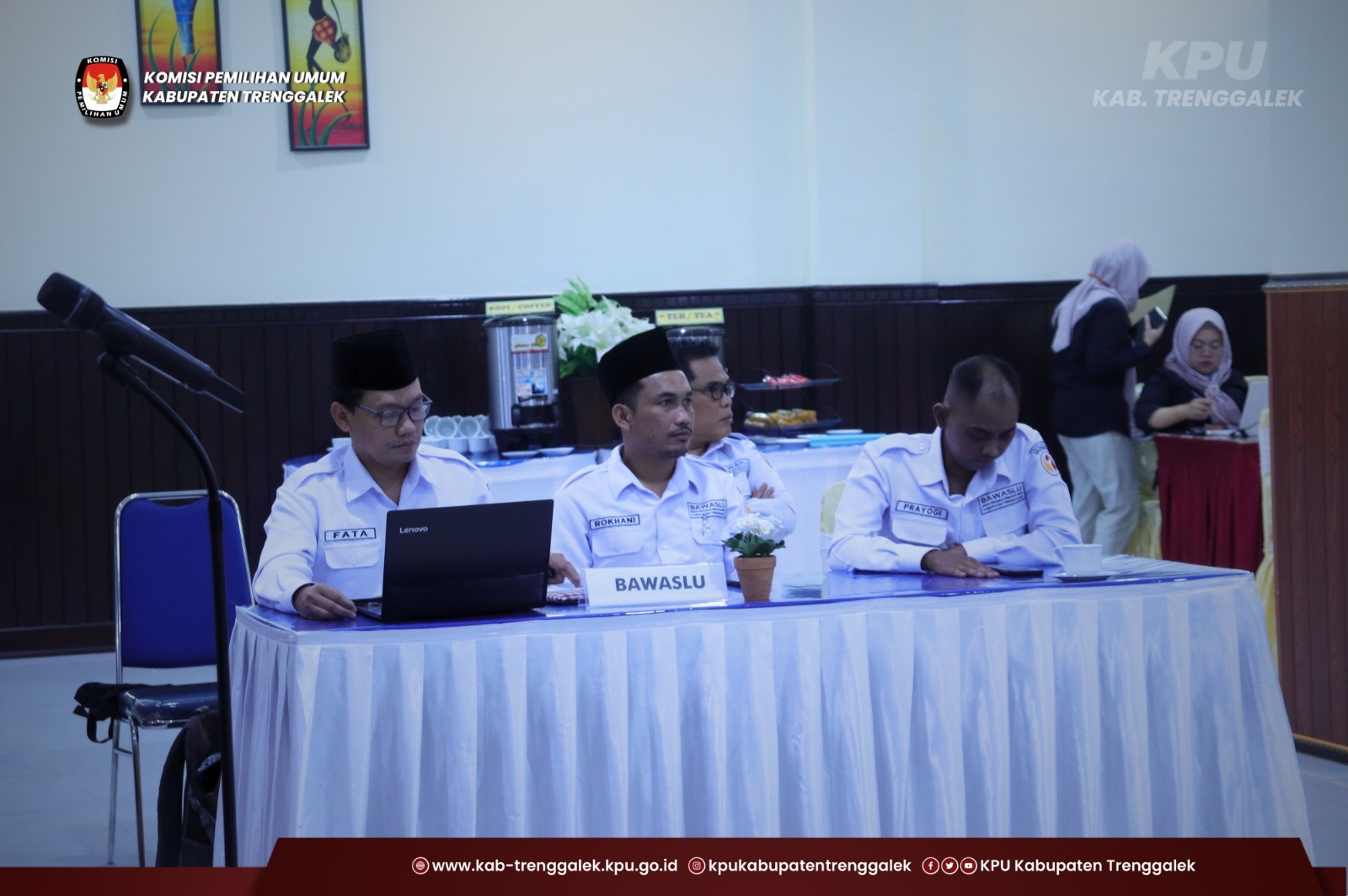 Dalam hal ini, seluruh peserta rapat menyetujui, menyepakati dan tidak berselisih pendapat terhadap data dari PPK. Selanjutnya Indra melanjutkan dengan memaparkan perjalanan pemutakhiran data di masing-masing kecamatan se-Kabupaten Trenggalek, yang meliputi proses pembersihan data ganda antar wilayah, data TMS, data ubah dan data Pemilih baru yang muncul pasca pleno DPSHP Akhir oleh PPK hingga menjadi data pada Daftar Pemilih Tetap.