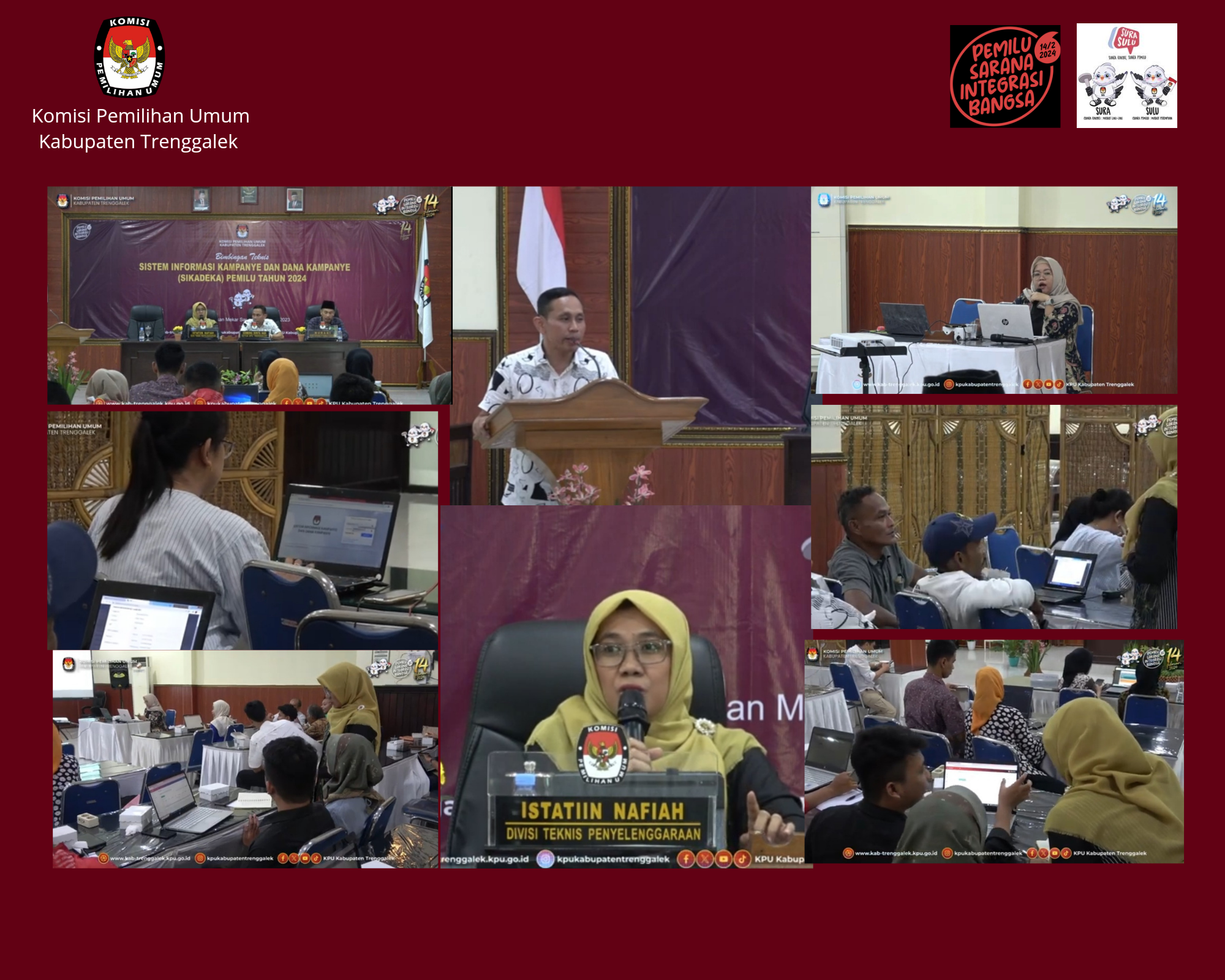 Hari ini, Jumat, 24 November 2023, Komisi Pemilihan Umum Kabupaten Trenggalek menyelenggarakan Bimbingan Teknis Penggunaan Aplikasi Sistem Informasi Kampanye dan Dana Kampanye (SIKADEKA) kepada operator perwakilan partai politik peserta Pemilu Tahun 2024 tingkat Kabupaten Trenggalek. Bimtek yang diselenggarakan di Hall Rumah Makan Mekarsari tersebut diikuti oleh Forkopimda,18 operator SIKADEKA dari partai politik, seluruh Komisioner dan Sekretariat KPU Kabupaten Trenggalek, Bawaslu Kabupaten Trenggalek, dan OPD terkait. Kegiatan dimulai pada pukul 13.00 WIB oleh MC dengan diawali Menyanyikan Lagu Kebangsaan Indonesia Raya yang dipimpin oleh dirigen. Acara dilanjutkan dengan pembacaan Doa yang dipimpin oleh Haji Misdiyanto, Kasubbag Teknis Penyelenggaraan Pemilu, Partisipasi dan Hubungan Masyarakat. Acara dibuka secara resmi oleh Ketua KPU Kabupaten Trenggalek, Gembong Derita Hadi, pada pukul 13.30 WIB.