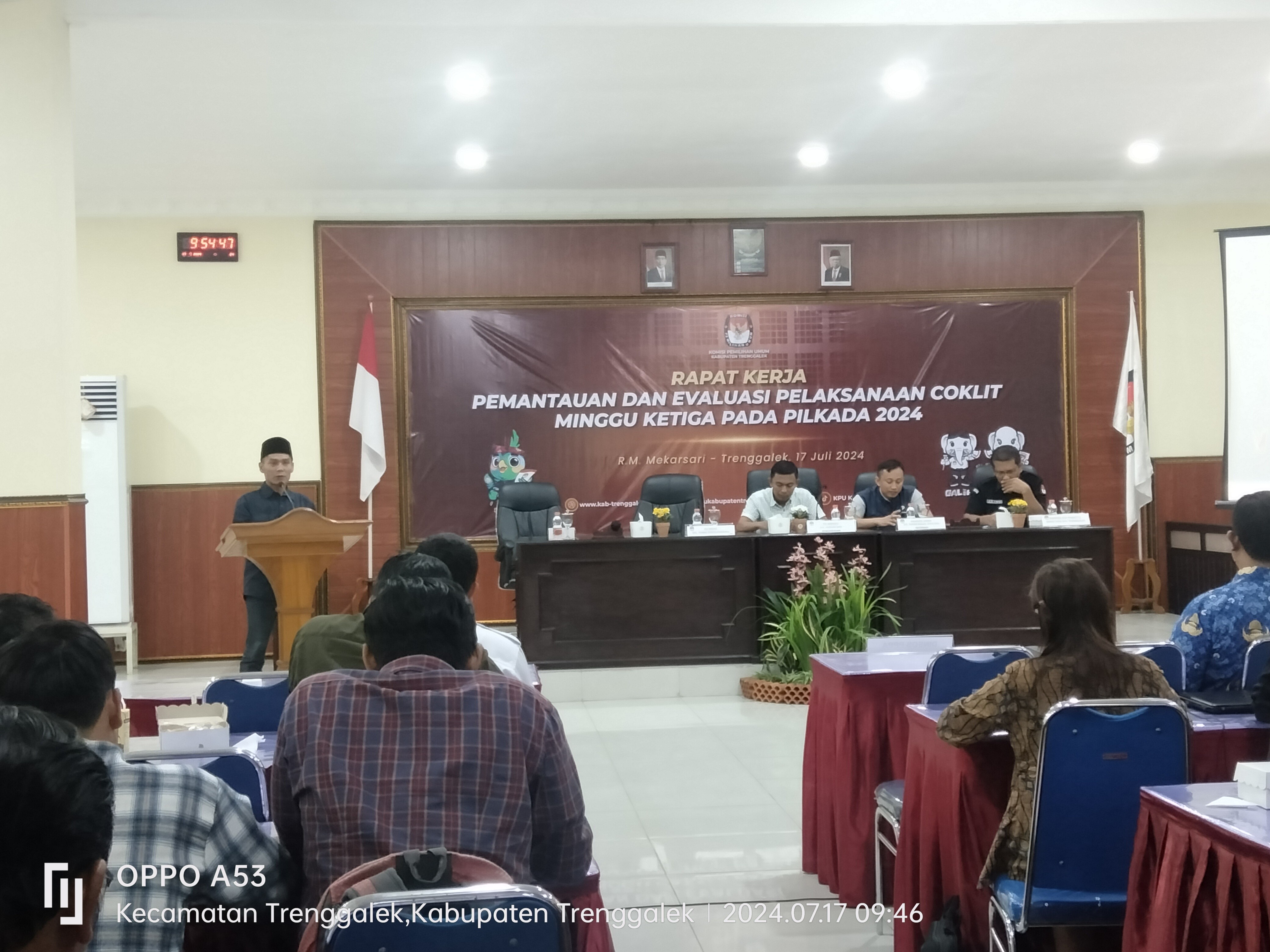 Hari ini, Rabu, tanggal 17 Juli 2024, Komisi Pemilihan Umum Kabupaten Trenggalek menyelenggarakan Raker Pemantauan dan Evaluasi Pelaksanaan Coklit Minggu Ketiga pada Pemilihan Gubernur dan Wakil Gubernur Jawa Timur serta Pemilihan Bupati dan Wakil Bupati Trenggalek Tahun 2024. Kegiatan yang diselenggarakan di Hall Rumah Makan Mekarsari tersebut dihadiri oleh 3 (tiga) orang Anggota KPU Kabupaten Trenggalek yaitu (1) Ali Sadad, Anggota KPU Kabupaten Trenggalek Divisi Teknis Penyelenggaraan, (2) Tri Andoko, Anggota KPU Kabupaten Trenggalek Divisi Hukum dan Pengawasan, (3) Mahbubil Umam, Anggota KPU Kabupaten Trenggalek Divisi Perencanaan, Data dan Informasi, dan Sekretaris beserta jajaran Sekretariat KPU Kabupaten Trenggalek, Dispendukcapil Trenggalek, Kepala Rutan II B Trenggalek, Dinas Sosial dan PPPA Trenggalek, Bakesbangpol Trenggalek, dan Ketua PPK serta Anggota PPK Divisi Data dan Informasi.