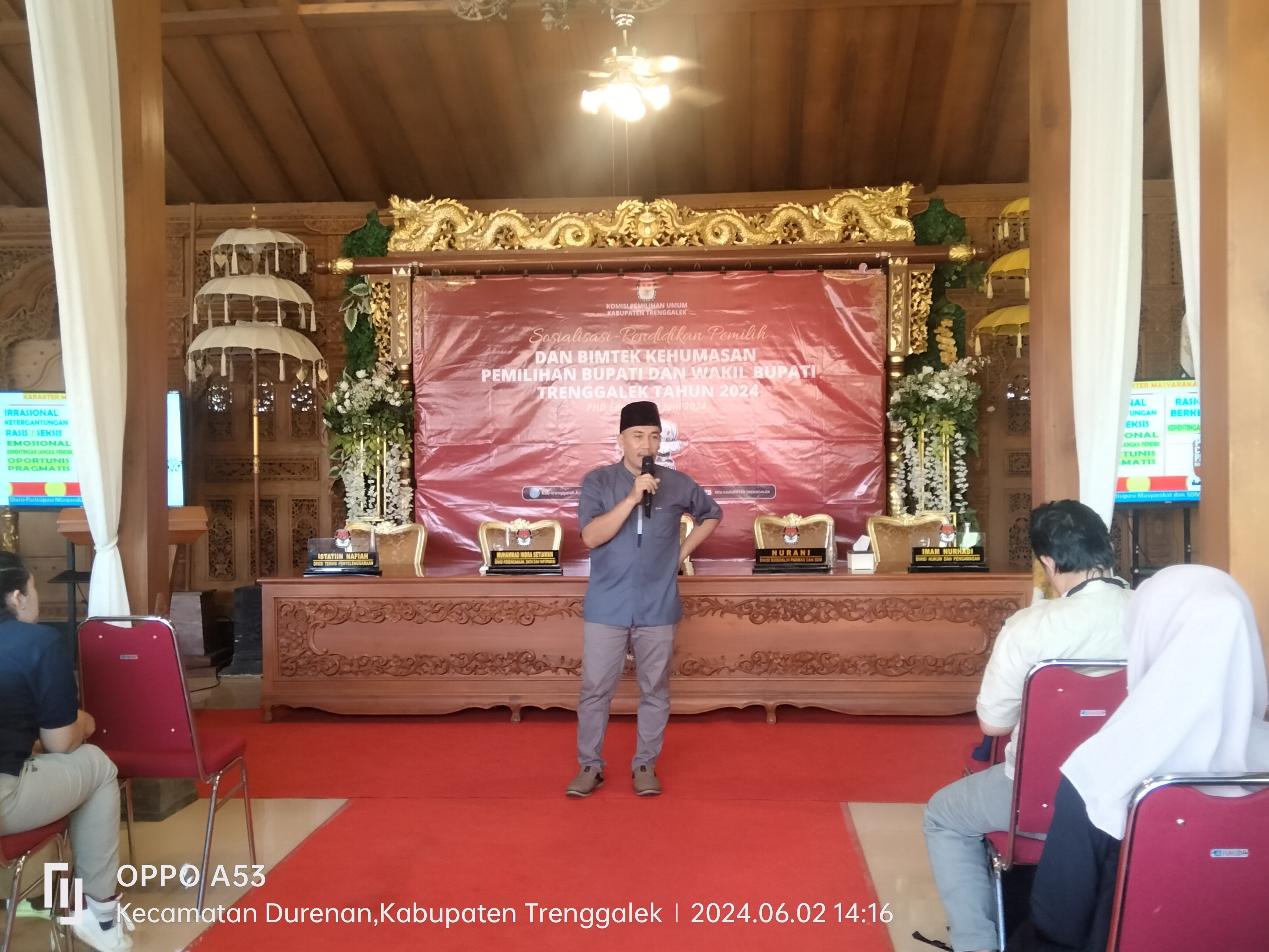 Hari ini, Minggu, tanggal 2 Juni 2024, Komisi Pemilihan Umum Kabupaten Trenggalek menyelenggarakan sosialisasi, pendidikan pemilih dan bimbingan teknis kehumasan dalam Pemilihan Gubernur dan Wakil Gubernur Jawa Timur serta Pemilihan Bupati dan Wakil Bupati Trenggalek Tahun 2024. Kegiatan yang diselenggarakan di Hall PHD Edufarm Desa Malasan, Durenan, Trenggalek tersebut dihadiri oleh Komisioner dan Sekretariat KPU Kabupaten Trenggalek, PPK se-Kabupaten Trenggalek, perwakilan PPS dari 14 kecamatan, pegiat media sosial, media massa, dan pemenang jingle dan maskot. Kegiatan dimulai pukul 08.00 WIB oleh MC diawali Menyanyikan Lagu Kebangsaan Indonesia Raya yang dipimpin oleh dirigen. Dilanjutkan pembacaan doa. Acara dibuka secara resmi oleh Ketua KPU Kabupaten Trenggalek, Gembong Derita Hadi.