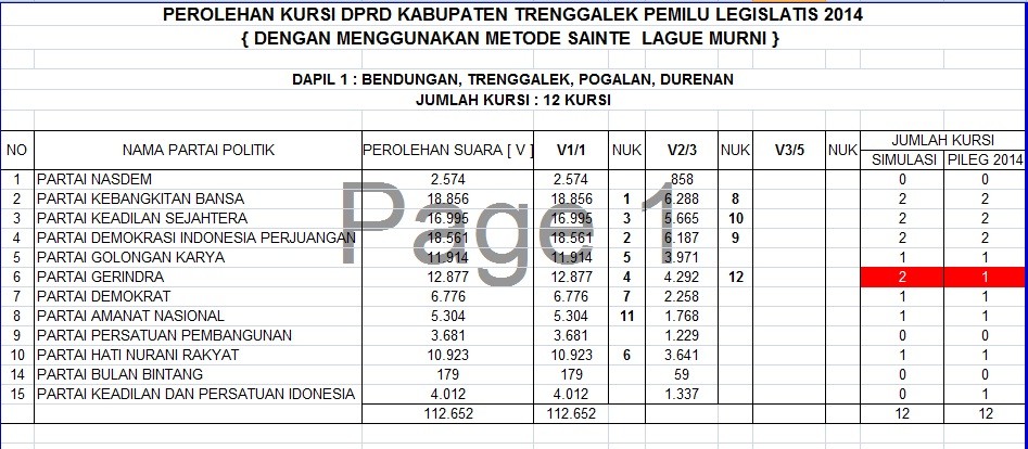 Dari hasil simulasi menggunakan metode berdasarkan UU baru itu, yang oleh Ketua KPU Trenggalek Suripto juga disebut metode Sainte Lague, ternyata hasilnya memang berbeda sedikit dengan perolehan kursi pada pemilu 2014 lalu. Jika menggunakan metode konversi terbaru ini, untuk Dapil IV, PDI Perjuangan bisa mendapatkan 3 kursi, berbeda jika menggunakan metode lama yang hanya mendapatkan 2 kursi. Partai Gerindra dengan metode baru ini bisa mendapatkan 2 kursi di dapil I, berbeda dengan metode lama yang Dapil II. [Hupmas]