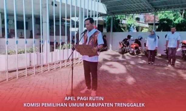 Apel pagi dimulai pada pukul 08.00 WIB. Bertindak sebagai Pembina Apel adalah Imam Nurhadi, Anggota KPU Kabupaten Trenggalek Divisi Sosialisasi, Pendidikan Pemilih, Partisipasi Masyarakat, dan Sumber Daya Manusia. Sedangkan Pemimpin Apel adalah Darmaji, Staf Sekretariat KPU Kabupaten Trenggalek.