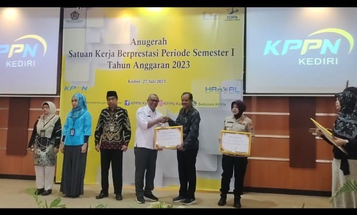 Hari ini, Kamis, tanggal 27 Juli 2023, Komisi Pemilihan Umum (KPU) Kabupaten Trenggalek menerima penghargaan dari Kantor Pelayanan Perbendaharaan Negara (KPPN) Kediri. Penghargaan tersebut diberikan oleh KPPN Kediri kepada KPU Kabupaten Trenggalek atas prestasi dalam Implementasi Kartu Kredit Pemerintah (KKP) Semester 1 Tahun Anggaran 2023. Penghargaan diserahkan langsung oleh Nurwedi Tjahjono, Kepala KPPN Kediri dan diterima oleh Wiratno, Sekretaris KPU Kabupaten Trenggalek dalam acara Anugerah Satuan Kerja Berprestasi Periode Semester I Tahun 2023 dan Penandatanganan Memorandum of Understanding (MoU) antara KPPN Kediri dengan KPU Kabupaten Trenggalek mengenai Penggunaan Kartu Kredit Pemerintah dan Digipaysatu dalam Pengadaan Barang dan Jasa yang bersumber dari Uang Persediaan Rupiah Murni. Kegiatan tersebut diselenggarakan pada hari Kamis, tanggal 27 Juli 2023 di Kantor KPPN Kediri pukul 08.00 sampai dengan 13.00 WIB.