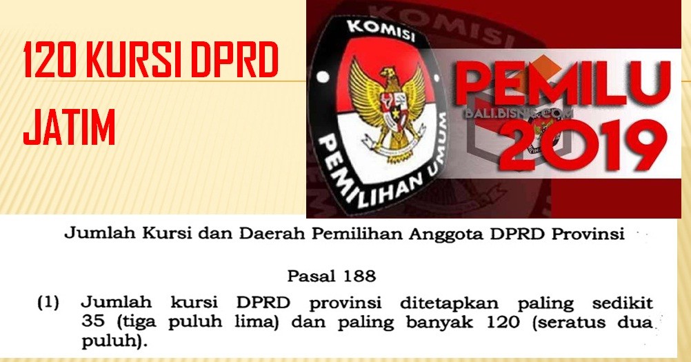Mencermati Undang-Undang Nomor 7 Tahun 2019 tentang Pemilu yang sudah disahkan, tampaknya ada beberapa perubahan ketentuan. Di antaranya adalah tentang jumlah kursi Dewan Perwakilan Rakyat Daerah (DPRD) tingkat Propinsi, termasuk Jawa Timur.
