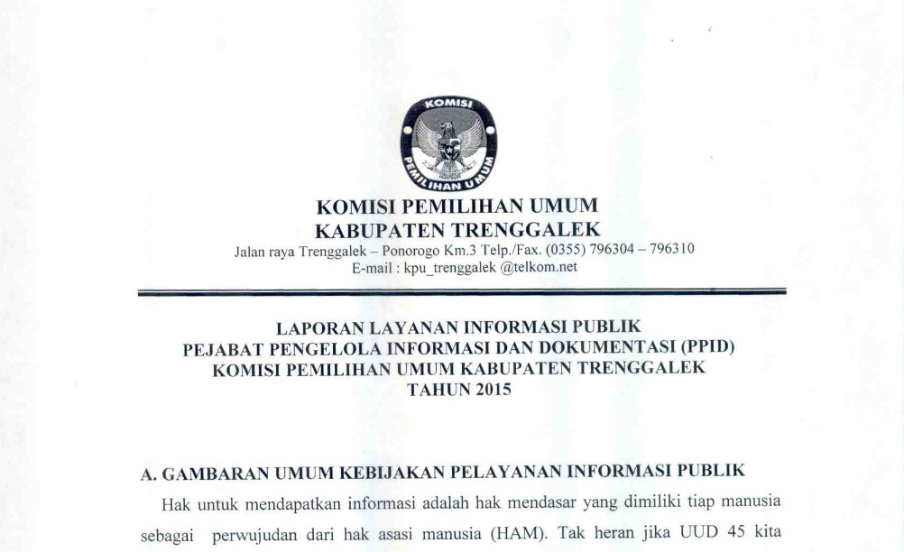 LAPORAN INFORMASI PPID KPU KAB TRENGGALEK TAHUN 2015