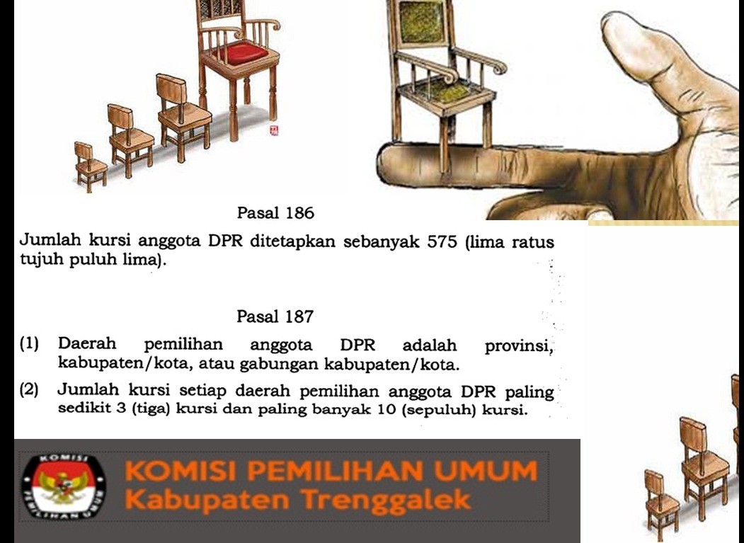 Fakta itu merupakan hasil dari ketentuan yang diatur oleh Undang-Undang Nomor 7 Tahun 2017 sebagaimana diinformasikan oleh KPU Kabupaten Trenggalek pada partai politik, stakeholder, dan perwakilan masyarakat dan mahasiswa di acara Rapat Pemetaan Dapil dan Alokasi Kursi di Hotel Jaaz, Kamis tanggal 07 Desember 2017 kemarin.