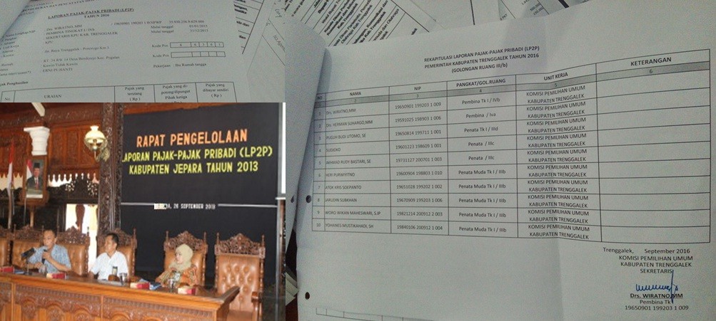Laporan Pajak-Pajak Pribadi (LP2P) para aparatur sipil negara di lingkungan KPU Kabupaten Trenggalek sudah dikirimkan ke Bidang Pembinaan dan Penghargaan Pegawai Kantor Badan Kepegawaian Daerah (BKD) Kabupaten Trenggalek. Demikian diinformasikan oleh Puguh Budi Utomo, kasubbag teknis dan Hupmas KPU Kabupaten Trenggalek dalam Rapat Analisa dan Evaluasi Harian (Anev) pada hari Kamis (22/09/2016) kemarin sore, ditambah dengan informasi hari ini saat ditemui di meja kerjanya.