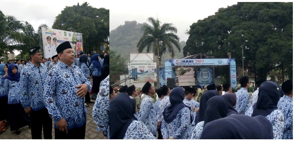 PARA PEGAWAI KPU TRENGGALEK HADIRI UPACARA HARI ANTI NARKOTIKA INTERNASIONAL