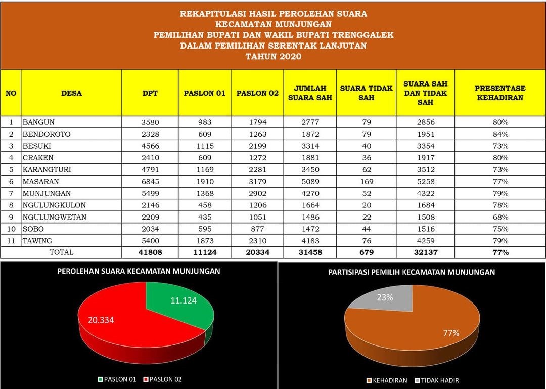 PARTISIPASI PEMILIH MENCAPAI 77% DI KECAMATAN MUNJUNGAN