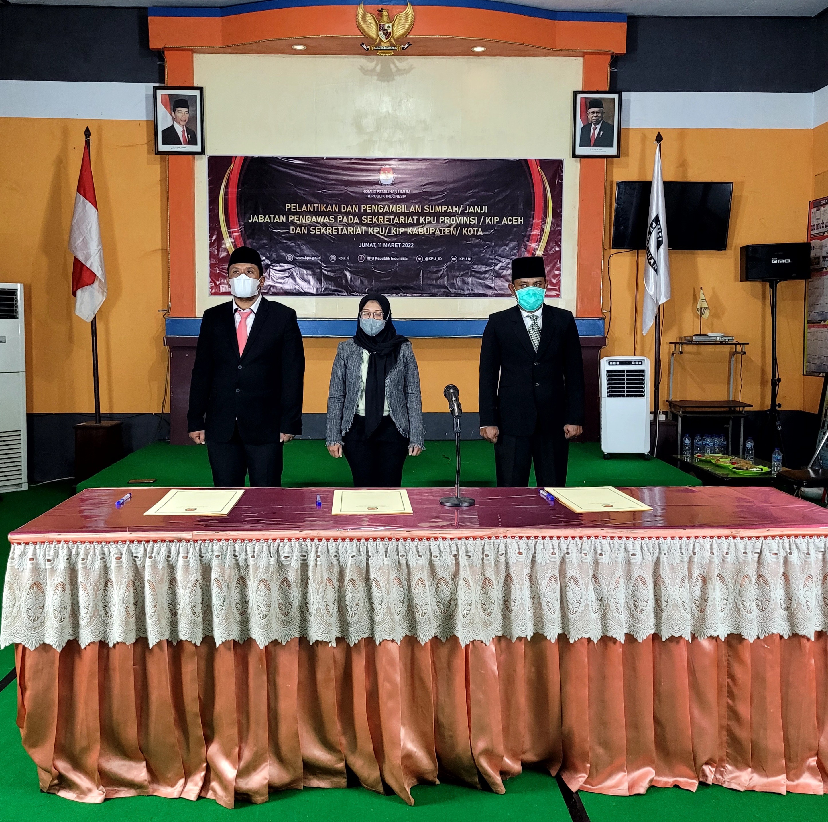 Trenggalek – Pada Hari Jum’at (11/03/2022), Komisi Pemilihan Kabupaten Trenggalek mengikuti Pelantikan 155 Kepala Sub Bagian (Kasubbag) di lingkungan Sekretariat KPU Provinsi dan Kabupaten/Kota se-Jawa Timur secara daring sesuai dengan Surat Dinas Sekjen KPU Nomor 536/SDM.05.5-SD/04/2022 menjadi dasar pendelegasian wewenang pelaksanaan Pelantikan dan Pengambilan Sumpah Janji Jabatan Kasubbag pada Sekretariat KPU Provinsi/ KIP Aceh dan Sekretariat KPU Kabupaten/ Kota oleh Sekjen KPU kepada Sekretaris KPU Provinsi.