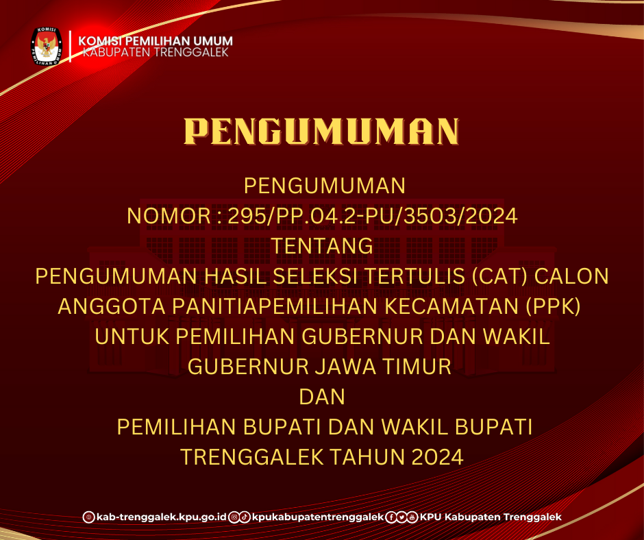 PENGUMUMAN HASIL SELEKSI TERTULIS (CAT) CALON ANGGOTA PANITIA PEMILIHAN KECAMATAN (PPK) TAHUN 2024