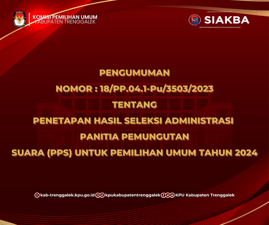 PENGUMUMAN NOMOR : 18/PP.04.1-Pu/3503/2023 TENTANG PENETAPAN HASIL SELEKSI ADMINISTRASI PANITIA PEMUNGUTAN SUARA (PPS) UNTUK PEMILIHAN UMUM TAHUN 2024