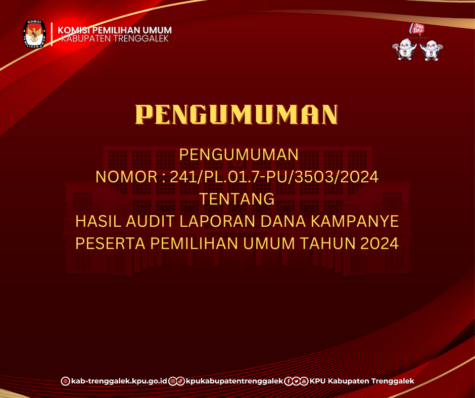 PENGUMUMAN NOMOR : 241/PL.01.7-Pu/3503/2024 TENTANG HASIL AUDIT LAPORAN DANA KAMPANYE PESERTA PEMILIHAN UMUM TAHUN 2024